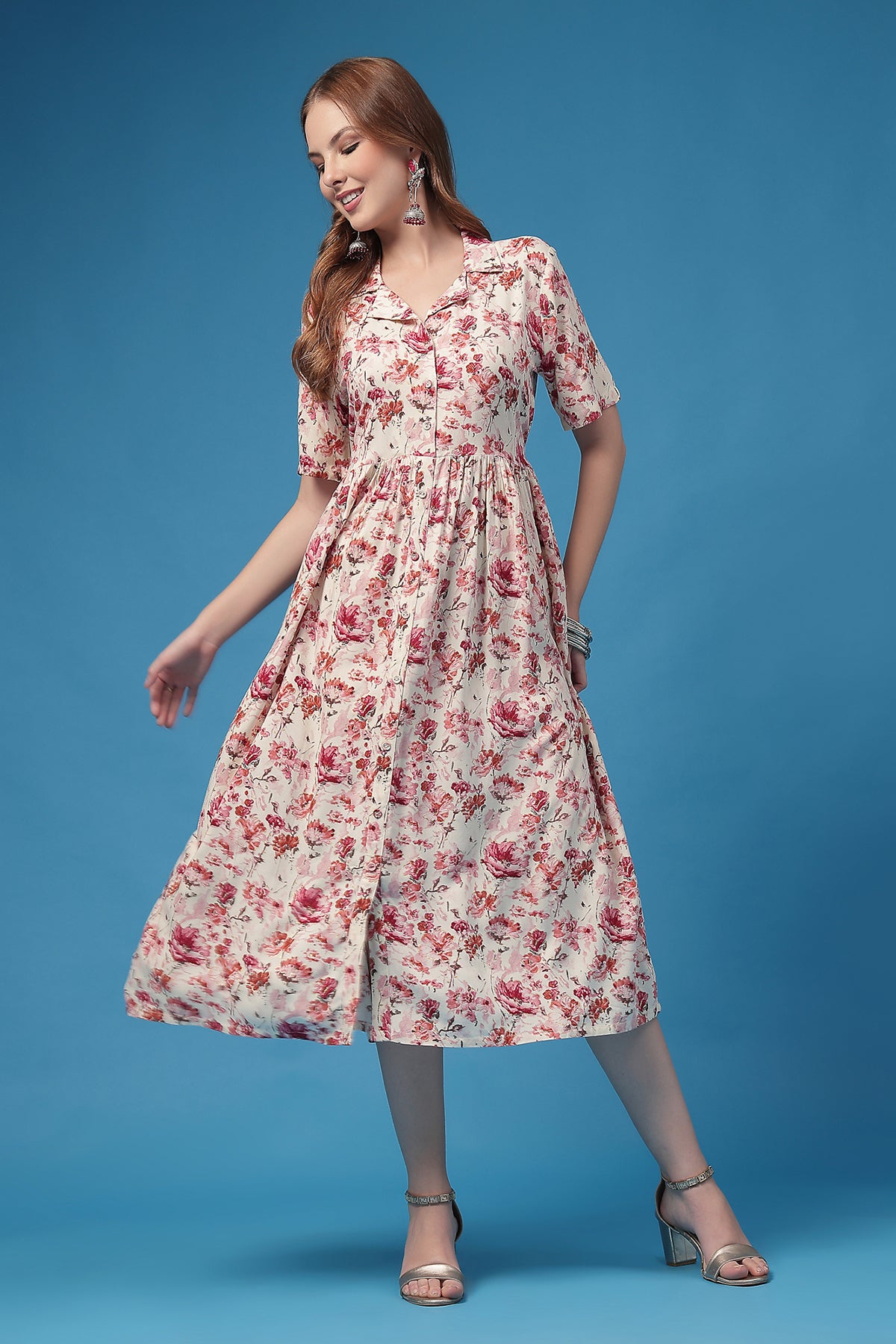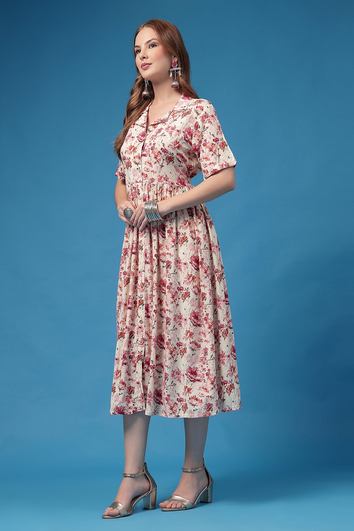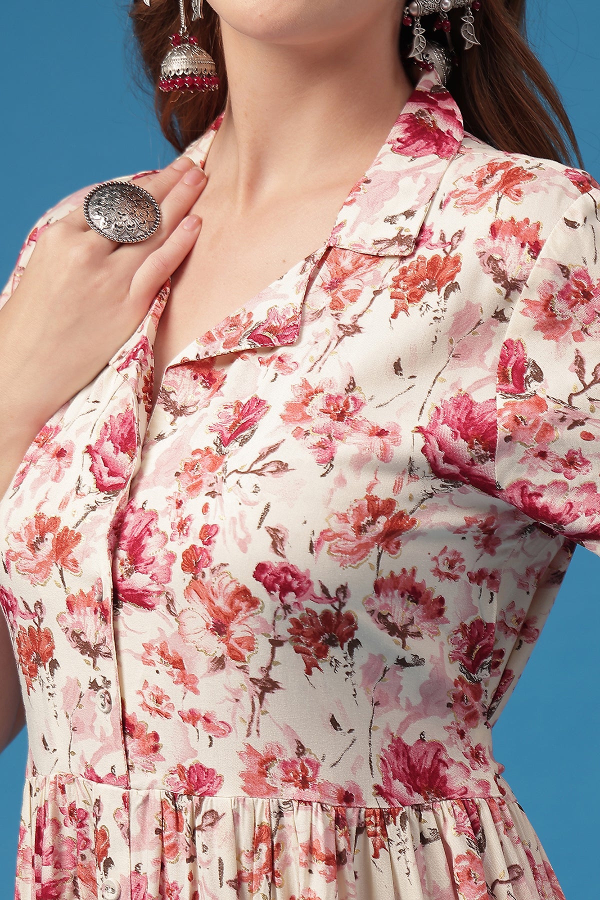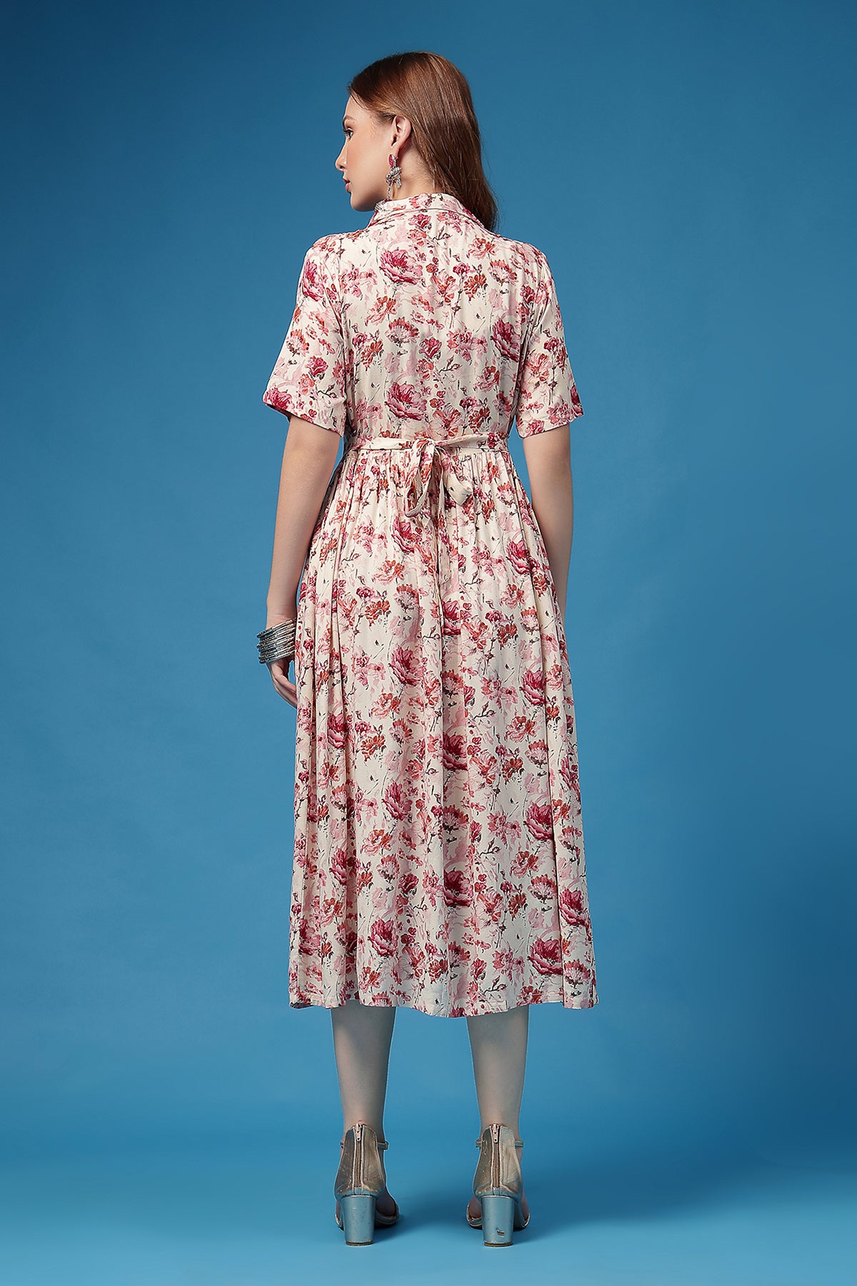 Timeless shirtdress cut → chic Indo-western vibe that works anywhere.