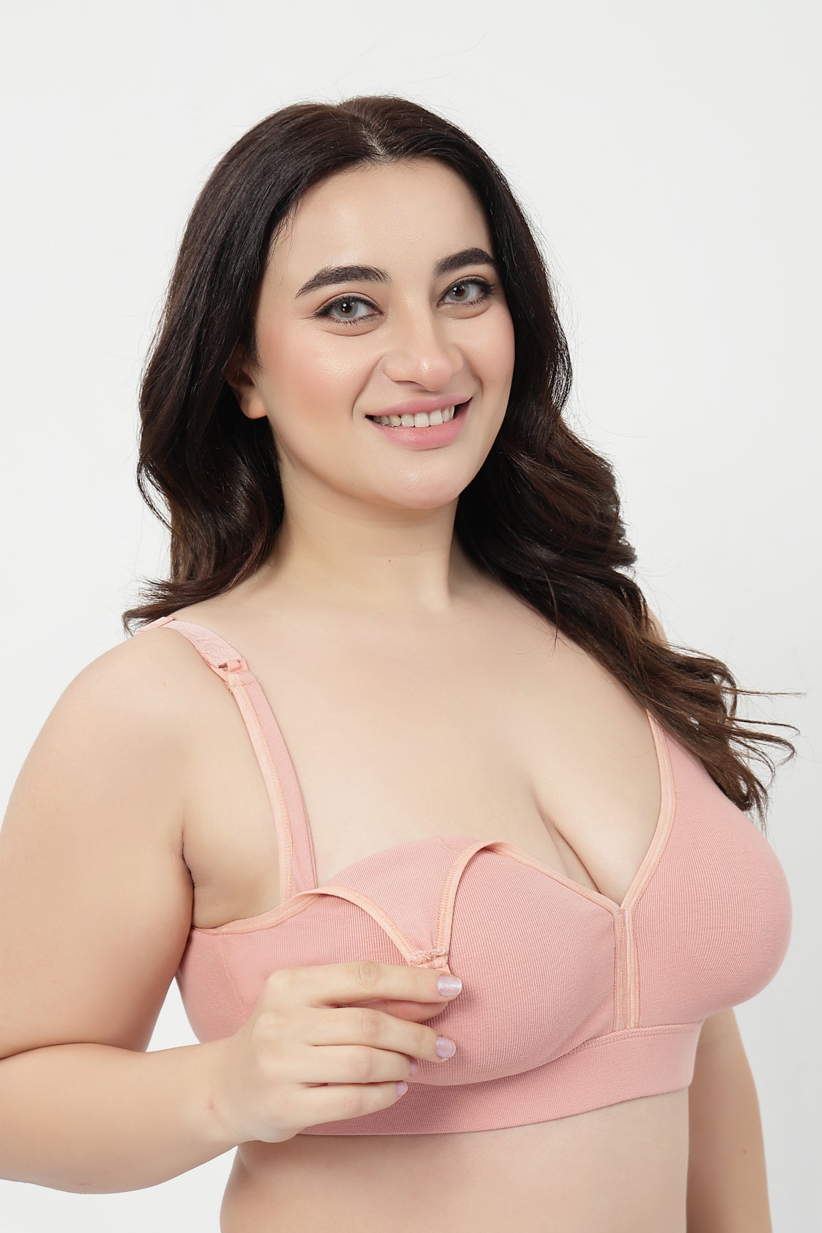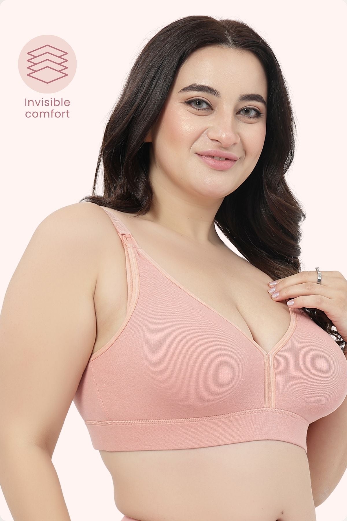 Crafted from soft, stretchable rib cotton with double lining, the fabric promotes airflow, absorbs moisture, and adapts effortlessly to bust changes during pregnancy and nursing — keeping you cool, dry, and comfortable. Easy Nursing Access