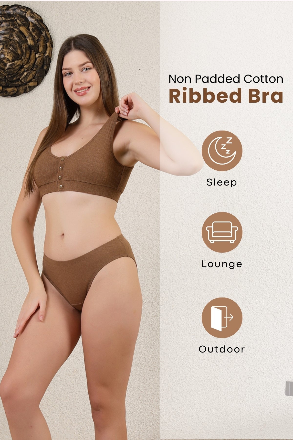 Designed for comfort-first living, this ribbed cotton lounge bra is the perfect blend of softness and stretch —no wires, no pinching, just pure ease.