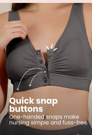 Quick and easy one-hand snap buttons on the front make your breastfeeding sessions easily manageable. -