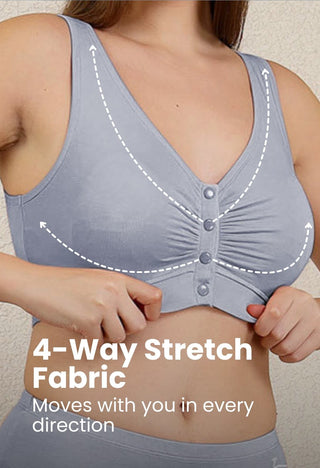 This bra features a simple, pull-on design or front open panel whichever way you might want to wear it on, that slips on easily and stays in place.
