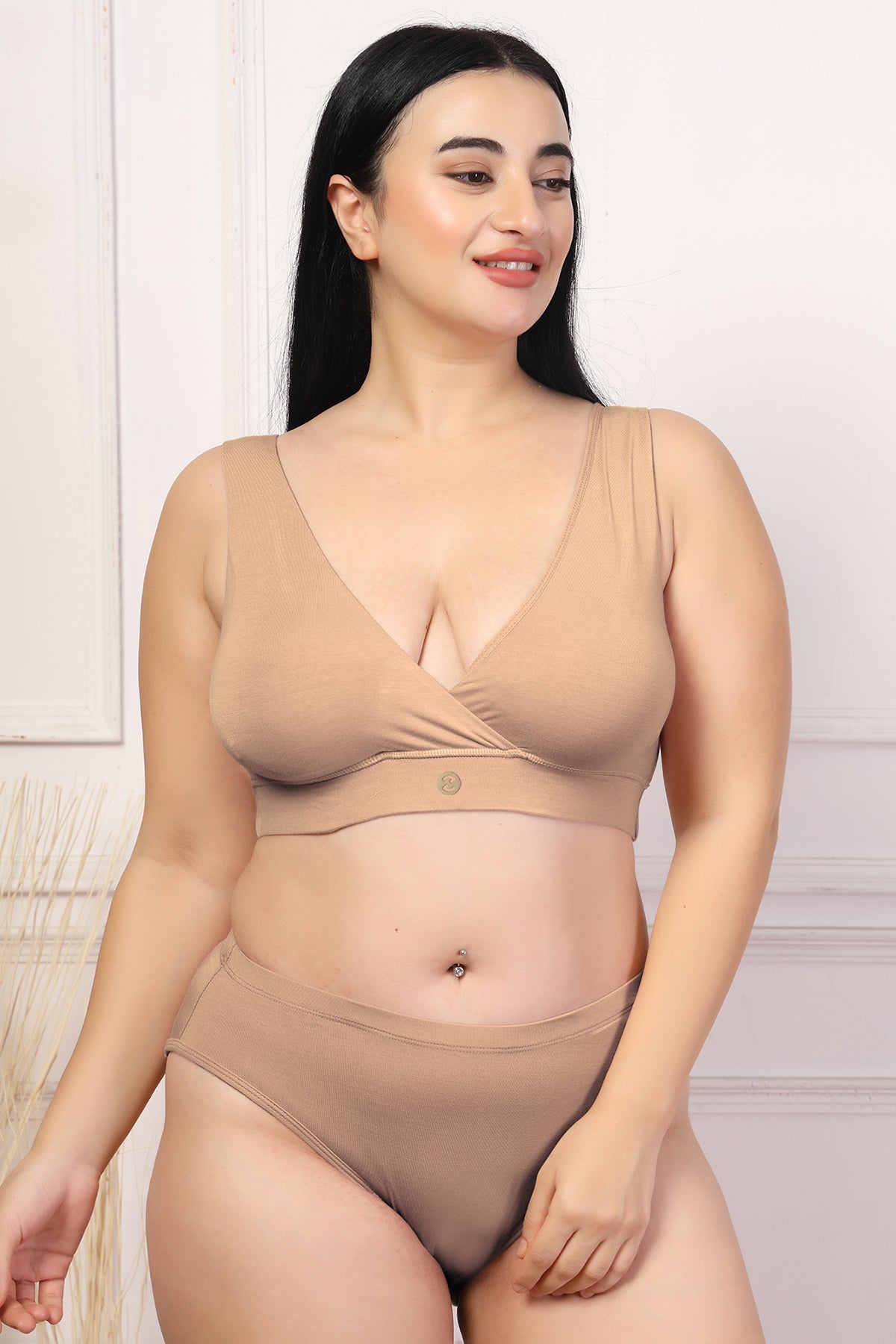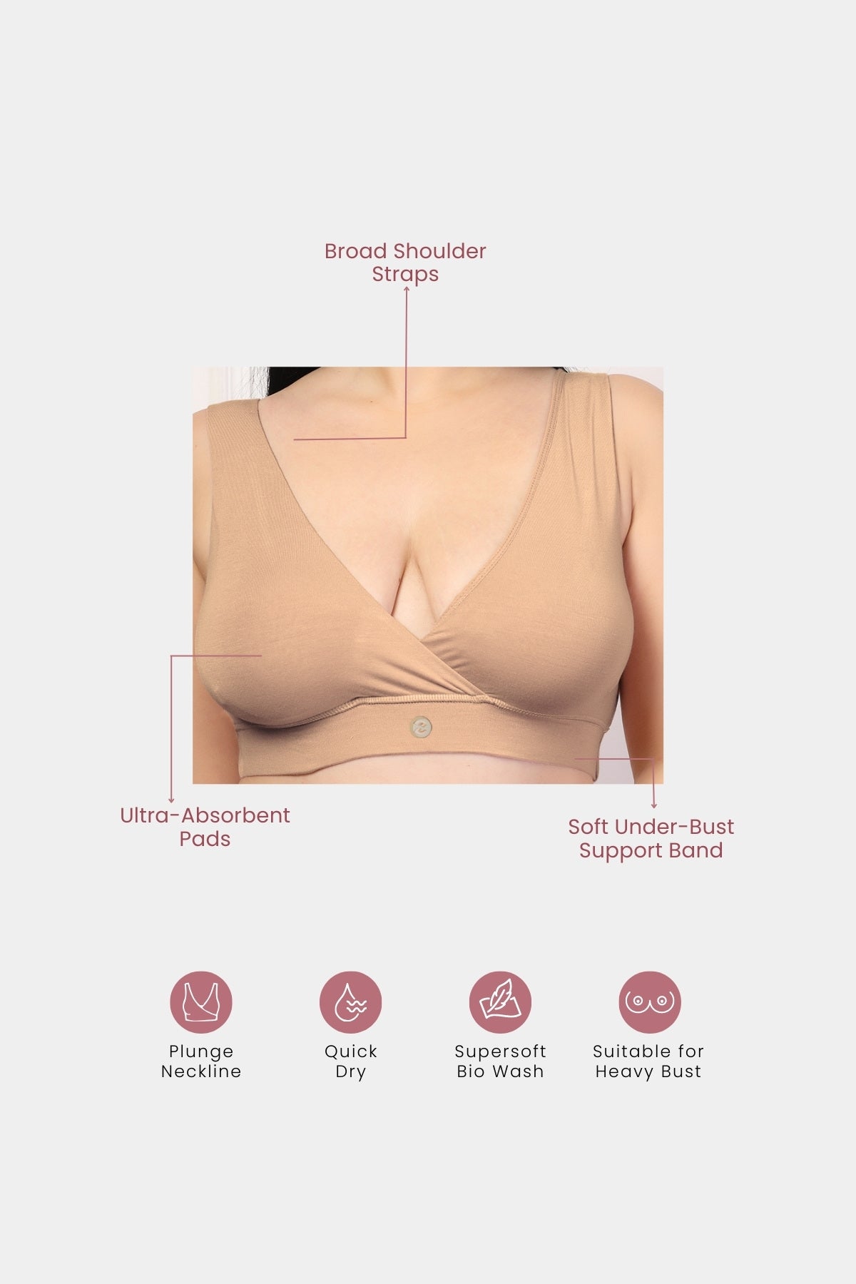 Crafted from 95% Lenzing™ Modal and 5% Elastane, providing 4 way lycra stretch fabric for adaptability and broad (soft) under-bust band for support & snuggle fit. Comes with removable & highly absorbent breast pads to cover your leaky moments. Wear peach under your soft shaded apparels.
