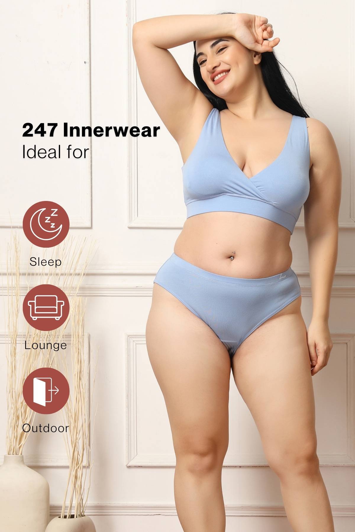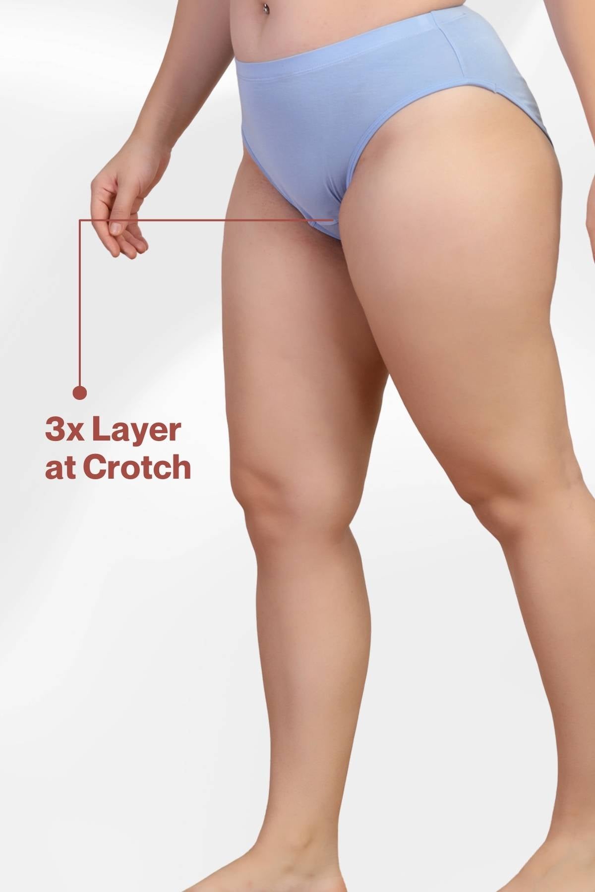 Crafted from Soft Lenzing™ Modal, 4 way stretch fabric for adaptability and an elasticated waistline for support & snuggle fit. Comes with a three-layer protection system, say goodbye to unwanted stain problems, wear it all day long – sleep, lounge, casual outings. No chafing poking or seethrough! Classic light blue shade never goes out of choice.