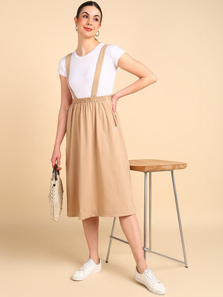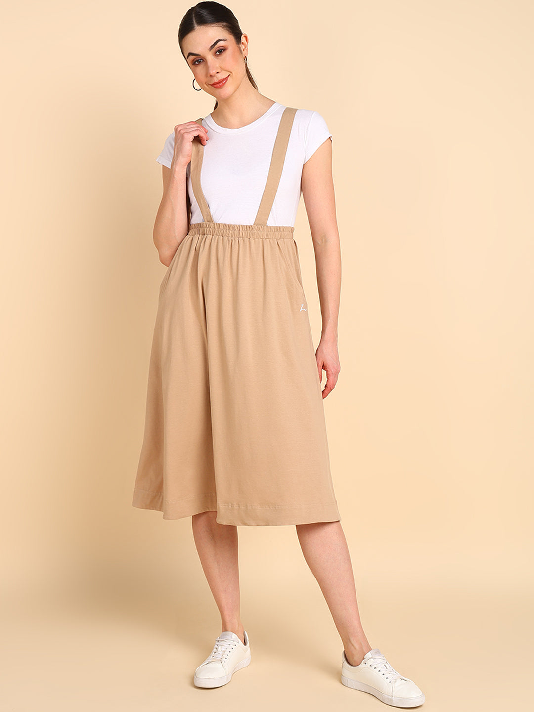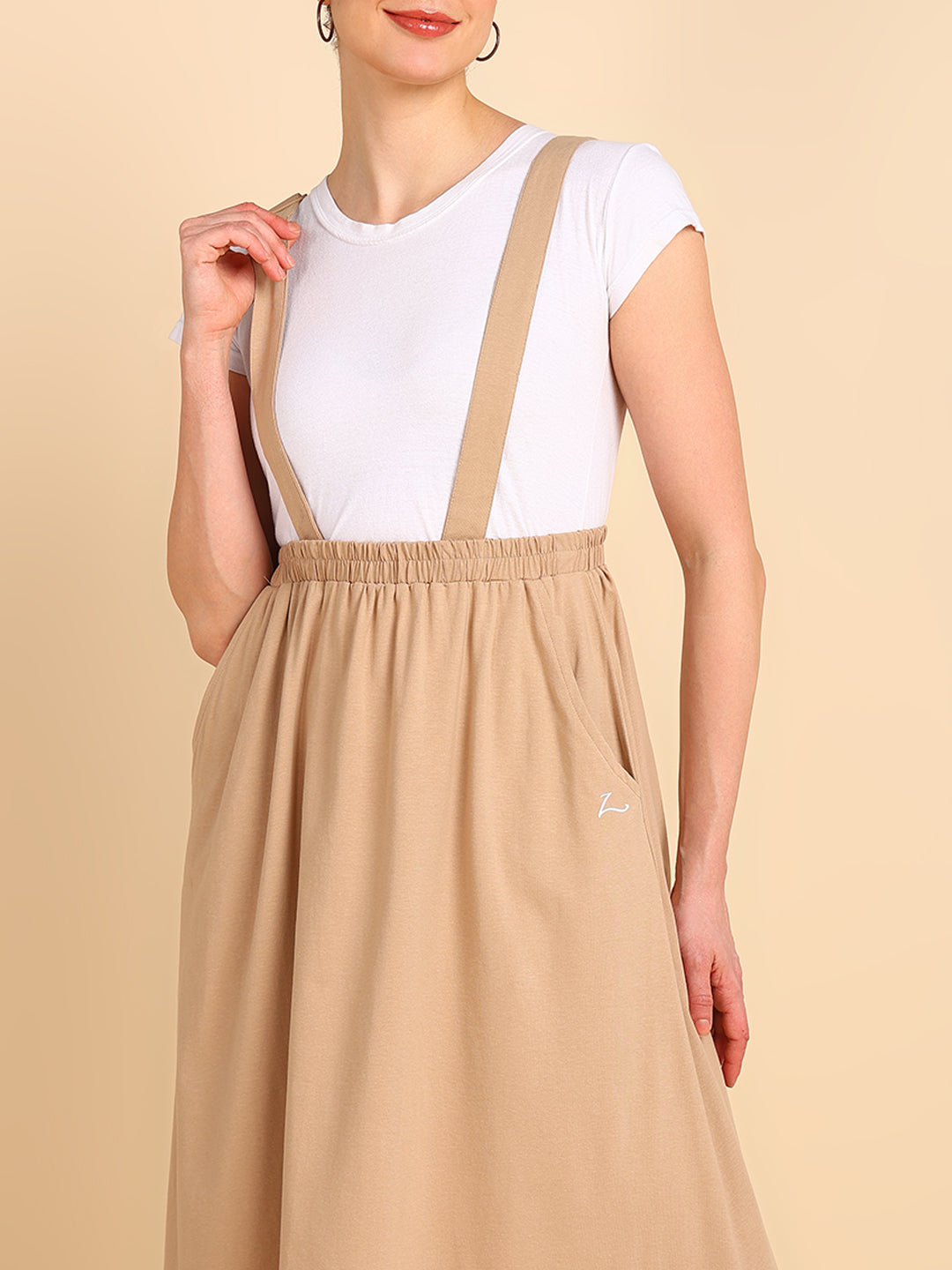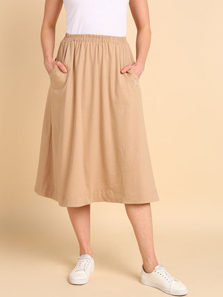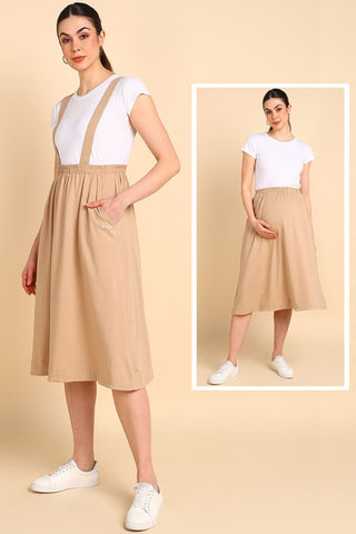 Beige 100% Cotton Jersey Pregnancy Skirt with Detachable Strap & Pockets