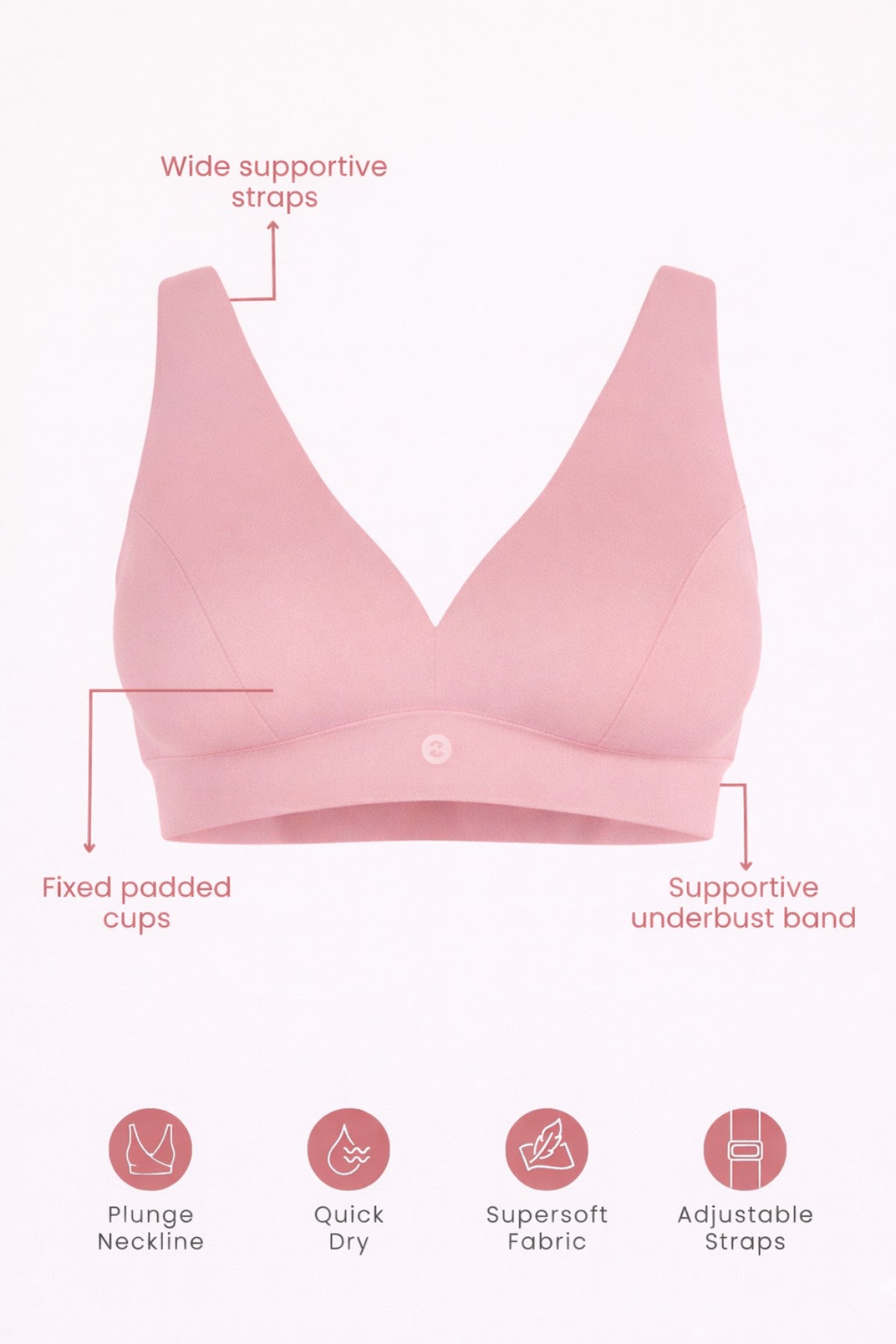 Fixed Padded Modal Maternity Feeding Bra with Support - Light Pink