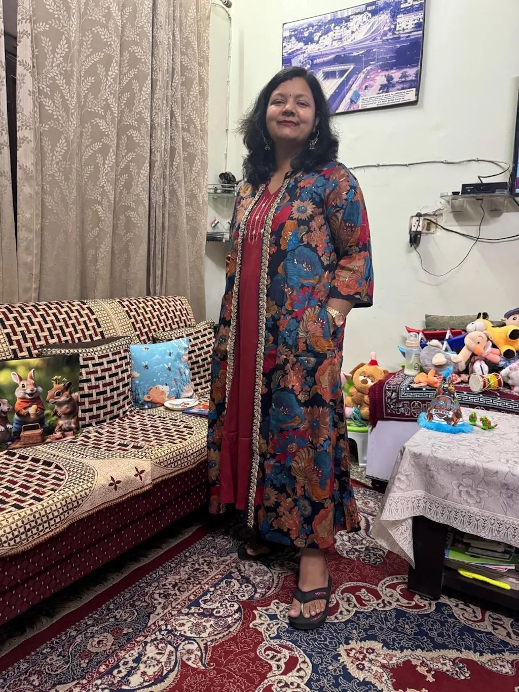 Loved the dress , bought size L. It served me dual purpose. It’s a sleeveless breeezy flowy piece inside and a jacket 3/4th sleeves outside. Has 2 long concealed zips inside on the sleeveless part and does not show as the jacket comes up so best use during feeding and now after weaning off also I’m wearing it. Paired it with leggings wit jacket and without jacket as a gown. Experience the feeding functional luxury nobody ever designed earlier