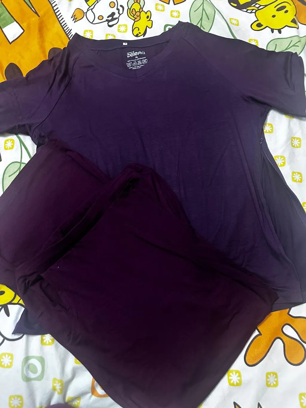 Bought the size XL in the Plum top and it fits really easy and cozy. Have worn it for an entire day and felt all my work gets done without getting tired. Top has 2 side long zips for feeding easy. even now when i am not a nursing mother, this still makes it easier to wear and open when pairing with Maternity high pajamas. I have mixed and match this plum top with burgundy high pajama and wore it all day. Really butter soft, jumping with my kid all day , cooking, doing my office work, and still managing to look stylish! must have in your wardrobe.