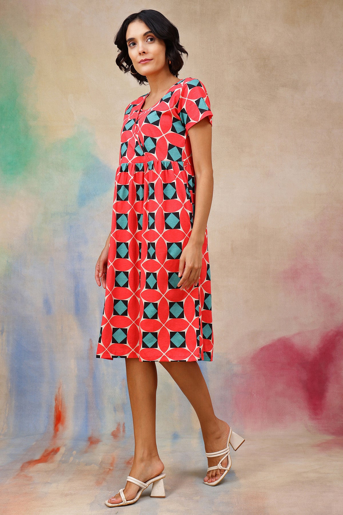 Styling Tips: Pair with comfortable white or beige sandals for a relaxed day out. Enhance the dress with elegant flats or low heels and a coordinating clutch for evening wear. Opt for simple gold or silver jewelry to complement the intricate print.