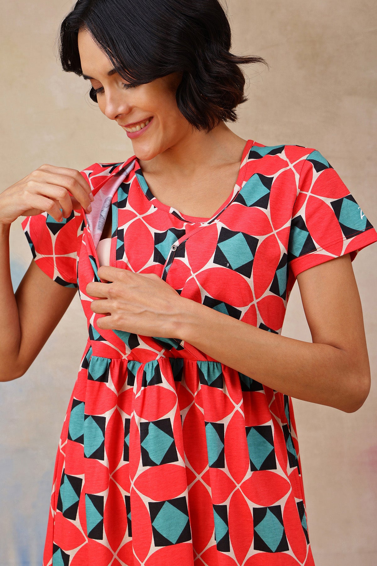 Fabric & Feel: Crafted from 95% cotton 5% Elastane, this Maternity Dress ensures all-day comfort with its soft, breathable material that’s gentle on the skin. This fabric is perfect for keeping cool and comfortable, making it an ideal choice for expectant and nursing mothers.