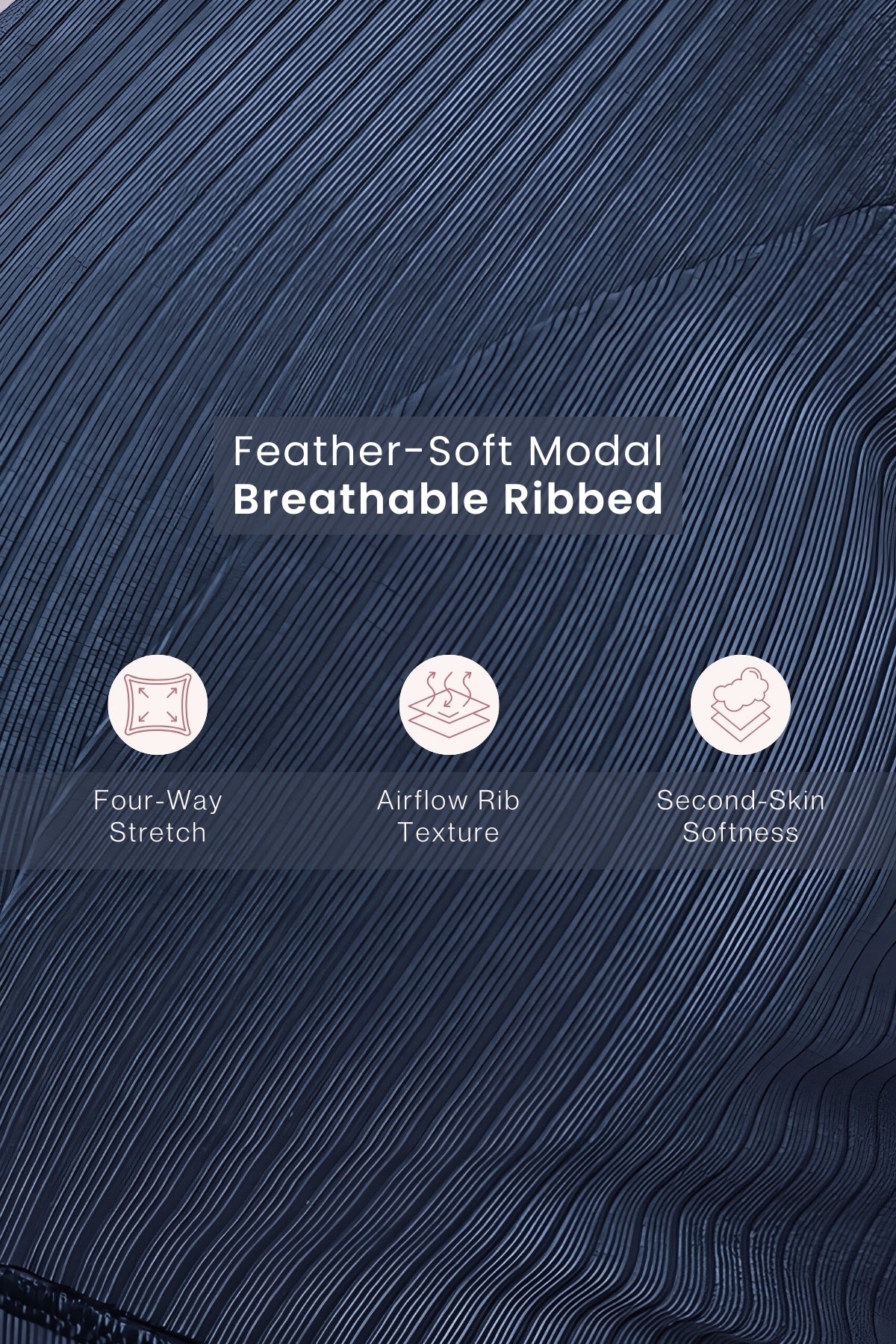 Breathable rib texture enhances airflow and helps regulate moisture, while the ultra-soft modal lining feels gentle and soothing on sensitive skin.