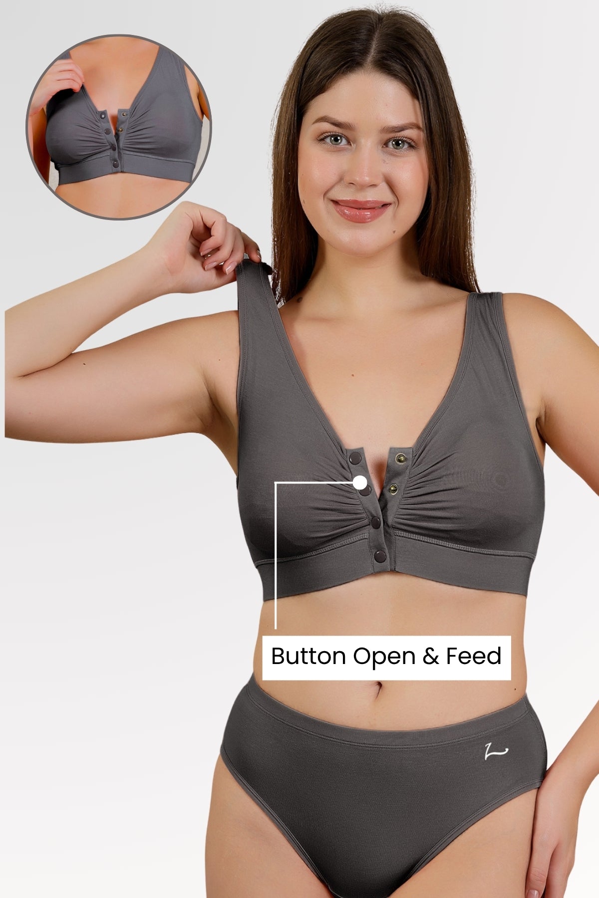 Quick and easy one-hand snap buttons on the front make your breastfeeding sessions easily manageable. -