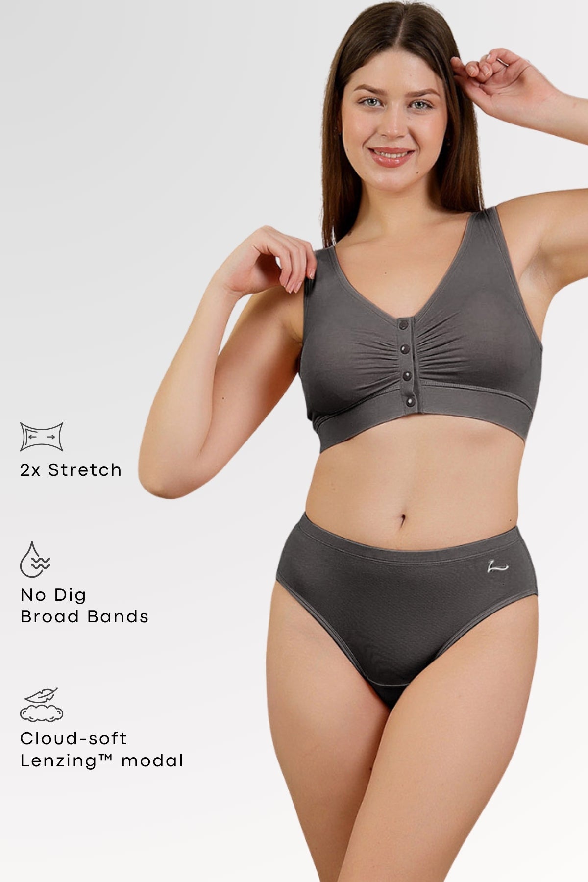 Crafted from premium Lenzing modal, this bra feels incredibly soft and breathable against your skin, perfect for sensitive postpartum bodies. -