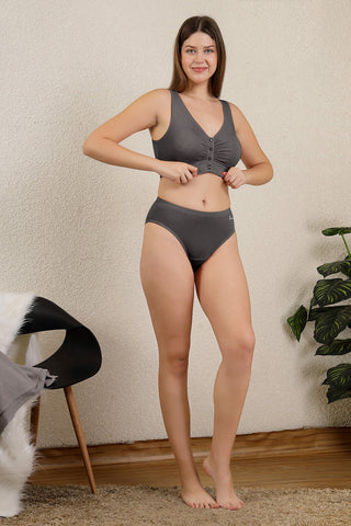 Skip the complicated hooks and clasps. This bra features a simple, pull-on design or front open panel whichever way you might want to wear it on , that slips on easily and stays in place. -