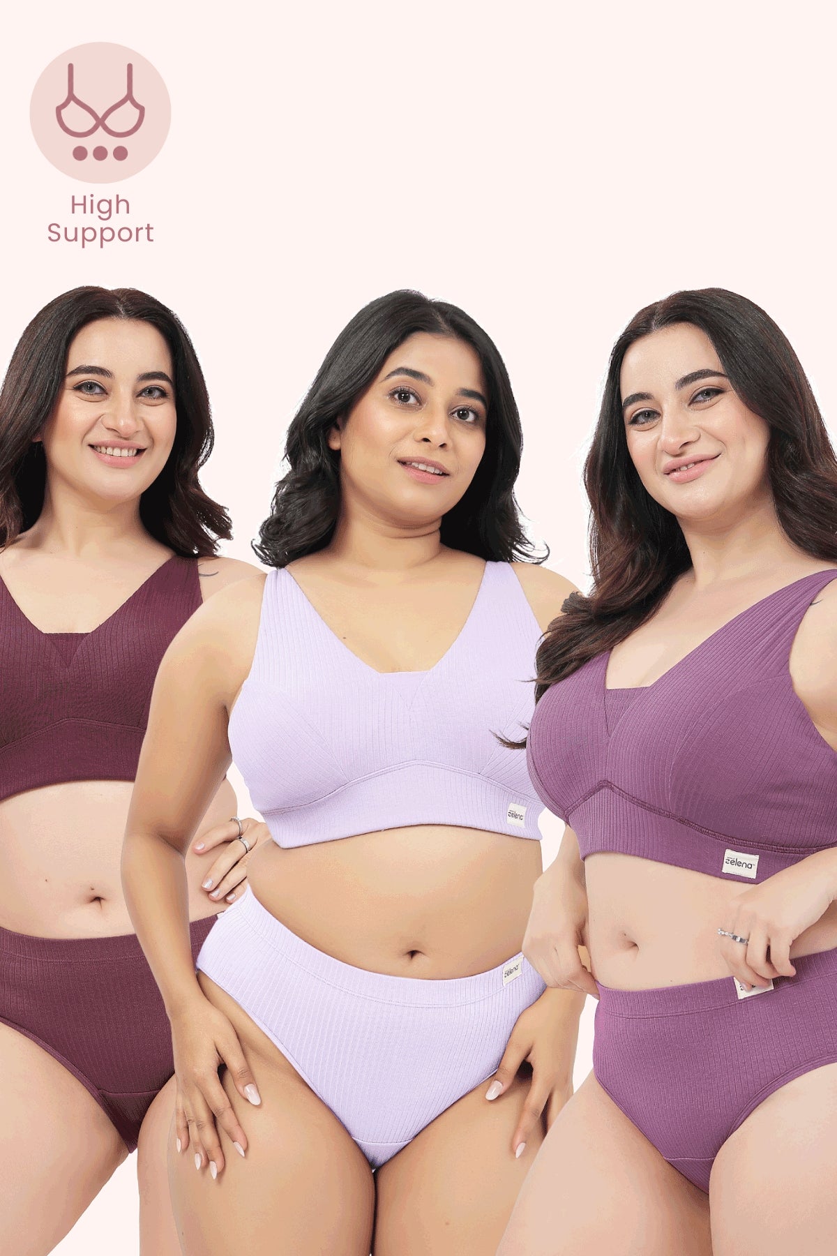 Sera Broad-Rib Bra Pack of 3 - (Lavender , Purple & Dark Berry)
