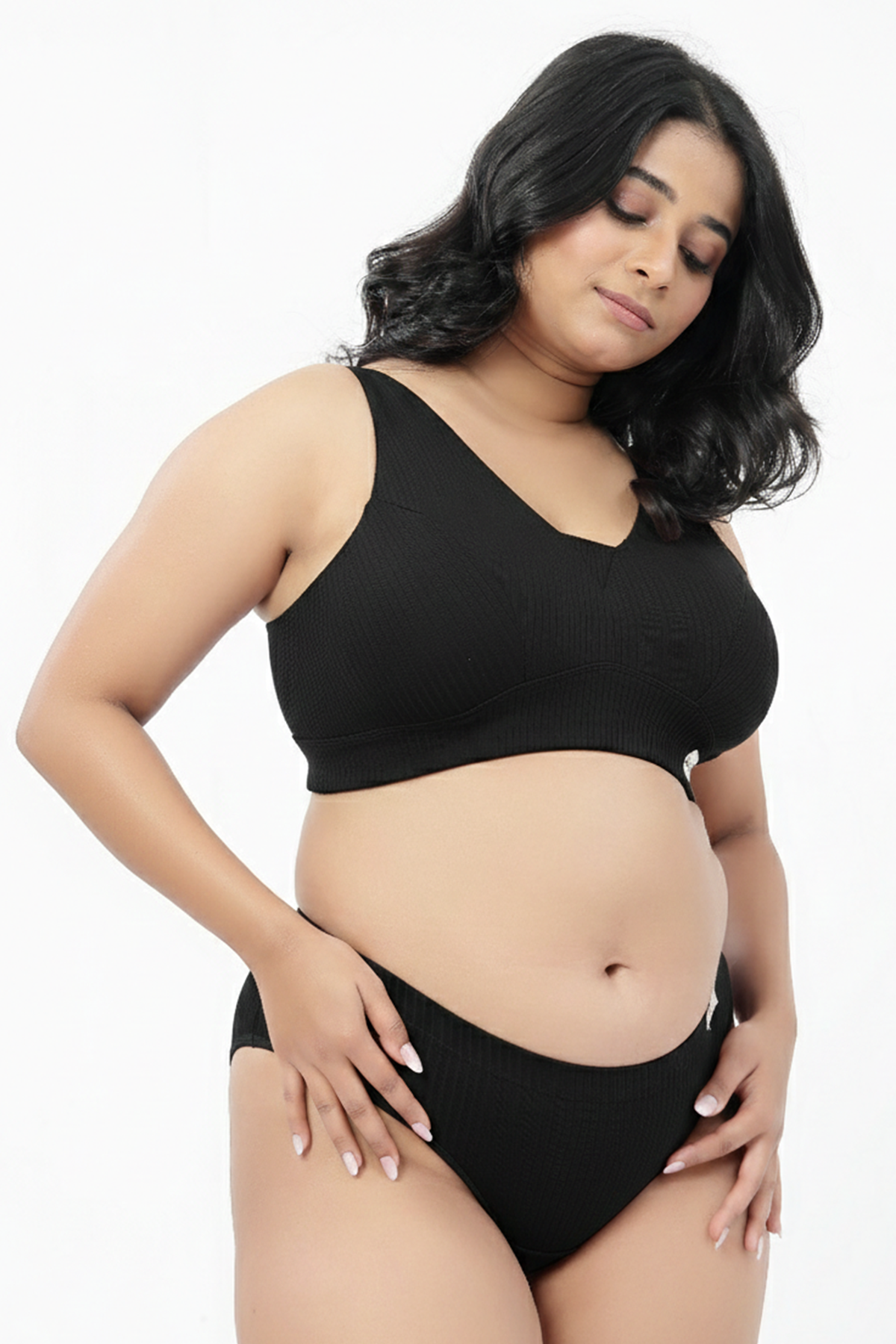 Made from soft 5/2 rib construction, the fabric stretches comfortably with your body and gently recovers to maintain shape. It adapts to movement and natural changes without losing its supportive structure.