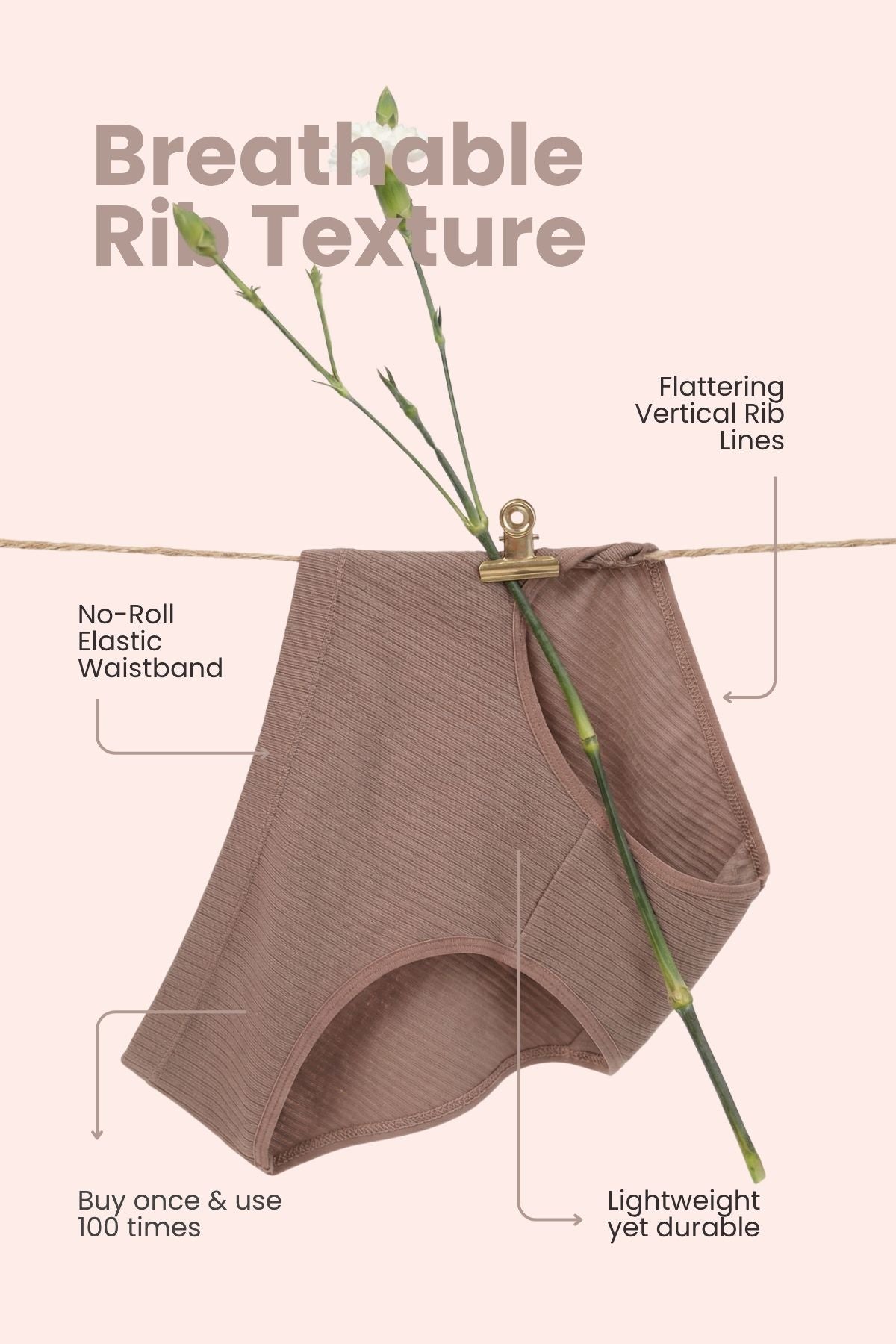 Lightweight yet durable, the rib fabric maintains stretch, recovery, and structure wash after wash — ensuring lasting comfort and support.