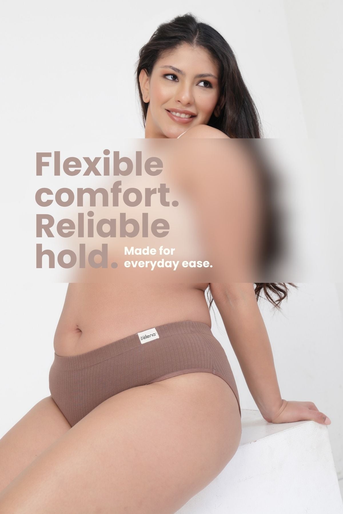 A secure branded elastic waistband sits steadily at the waist without digging or slipping. It delivers a stable, confident hold while remaining soft and pressure-free.