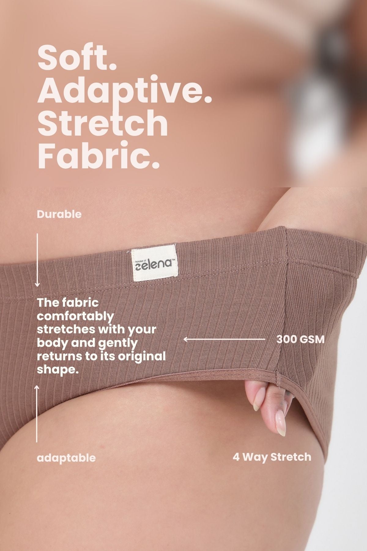 Made from soft 5/2 rib construction, the fabric stretches comfortably with your body and gently recovers to maintain shape. It adapts to movement and natural changes without losing its supportive structure.