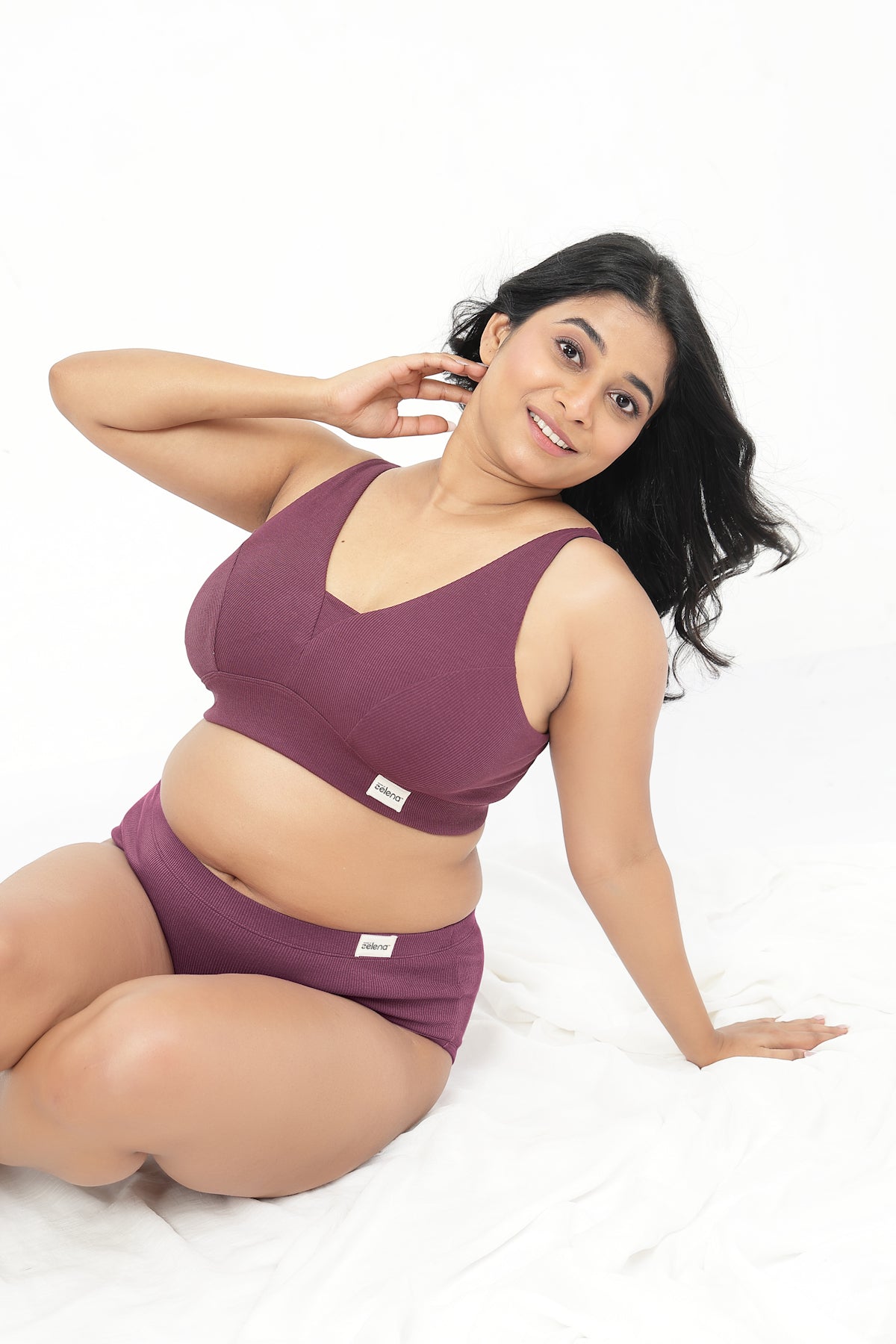 Sera Fine-Rib Bra Pack Of 2 - (Dark Berry & Pink)