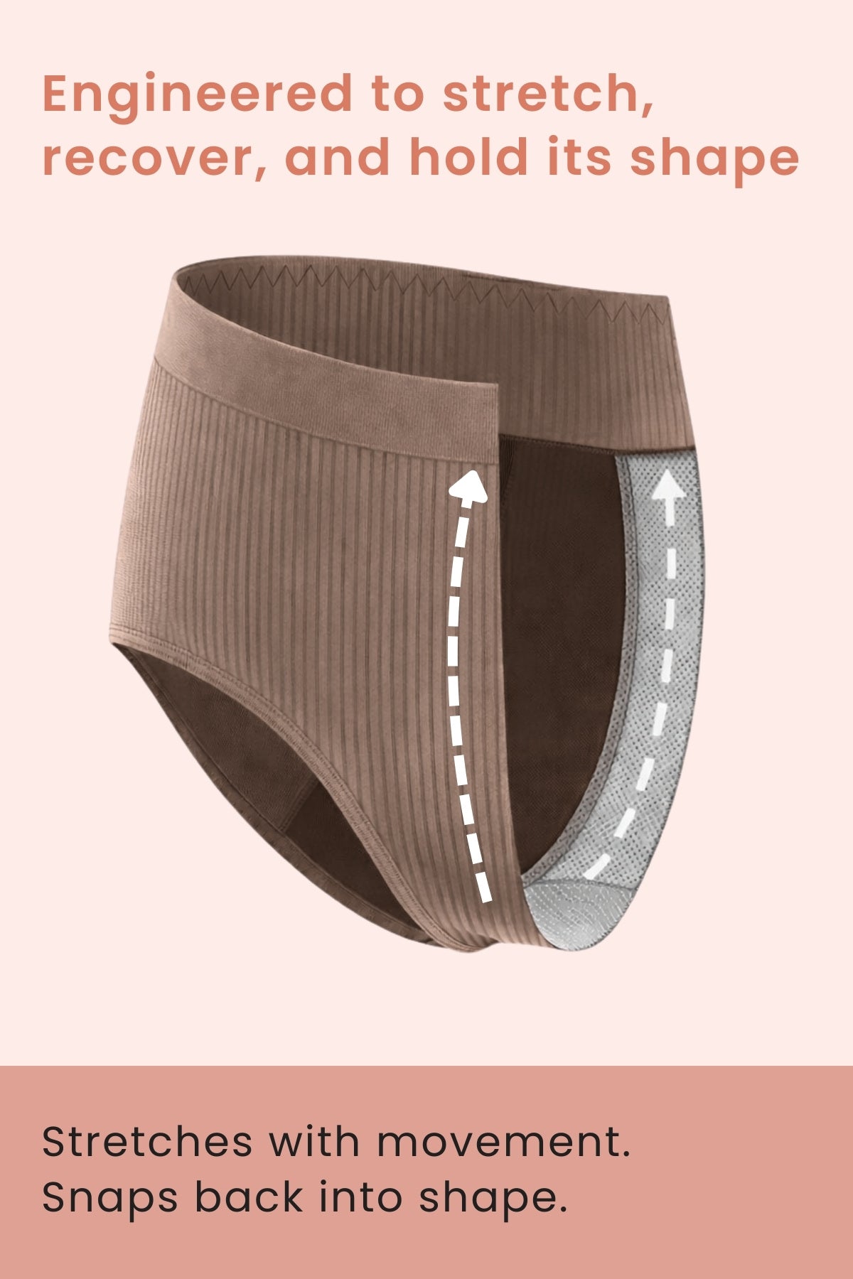 A secure elastic waistband stays in place without digging or slipping, offering stability without compression.