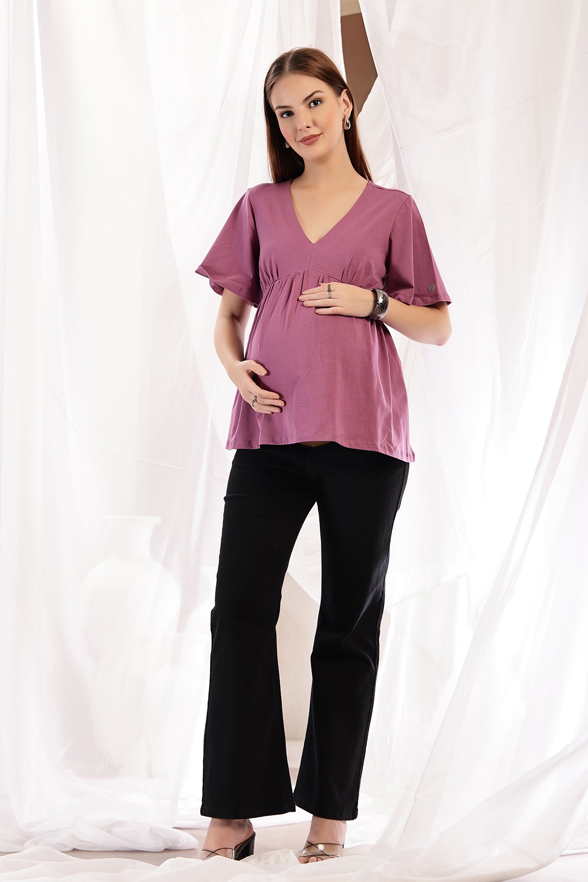 Pair this versatile top with black jeggings or maternity denims for a chic everyday look. Add statement earrings or a sleek watch to elevate your style while staying comfortable. Perfect for casual outings, work-from-home, or relaxed evenings.