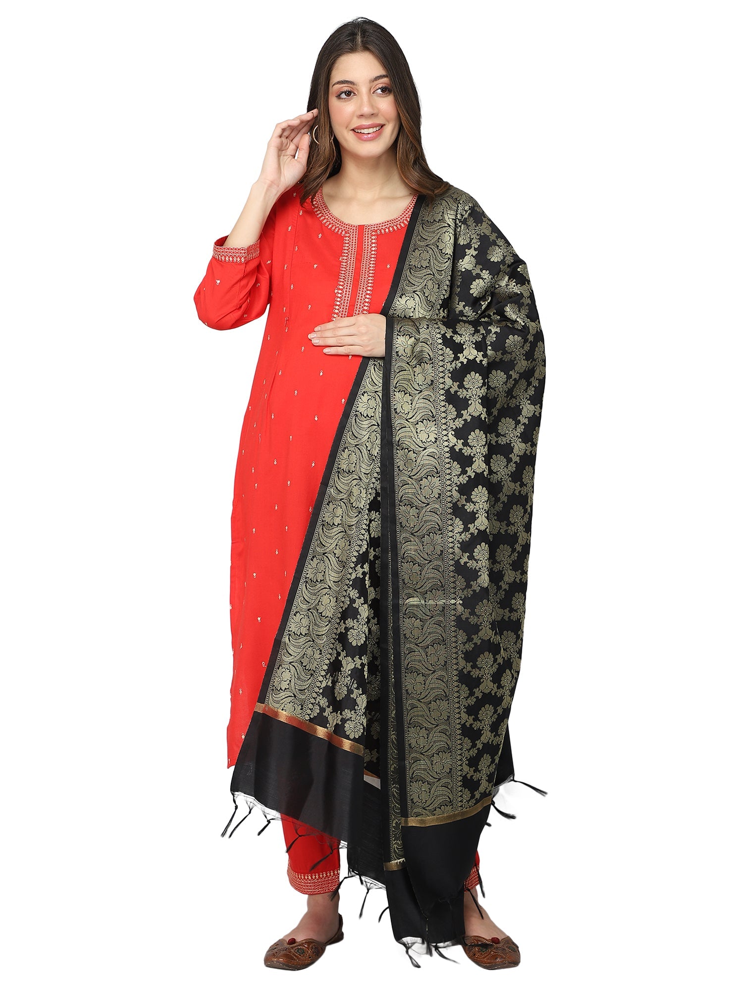 - High-quality fabric: Our Black Banarasi Dupatta is made from high-quality fabric that is soft to the touch and drapes beautifully. The intricate weaving pattern adds a touch of sophistication to the piece.